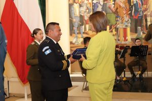 En dicho acto solemne, la Secretaria Ejecutiva del Programa de becas del Gobierno de Chile para Policías Uniformadas Extranjeras CECIPU, General ® de Carabineros, Sra. Pamela Olivares Peña, realizó la entrega de los galvanos recordatorios por su participación en el programa de becas a los becarios de Brasil y Guatemala, además de la entrega de una medalla en reconocimiento a sus destacado rendimiento académico al Teniente Coronel Marcelo Augusto De Medeiros Queiroz , perteneciente a la Policía Militar de Estado de Rio Grande de Norte-Brasil.