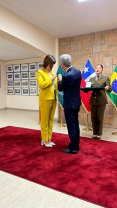 El 05 de diciembre en el Salón de Honor de la Academia de Ciencias Policiales de Carabineros de Chile, el Consejero Rodrigo Pinto, Jefe Sector Político de la Embajada de Brasil en Chile, efectuó la imposición de Medalla al Mérito Policial Luiz Gonzaga, a la Secretaria Ejecutiva del Programa de Cooperación Internacional del Gobierno de Chile para Policías Uniformados Extranjeros (CECIPU) General ® de Carabineros Sra. Pamela Olivares Peña.