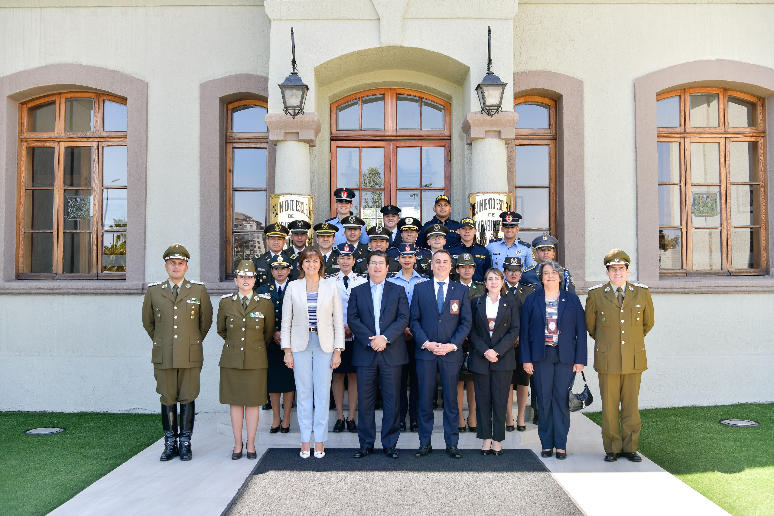 En representación de Carabineros de Chile, se contó con la presencia del Director Academia de Ciencias Policiales de Carabineros, Coronel Claudio Henríquez Valenzuela, el Director Escuela de Carabineros de Chile, Coronel Cristian Acevedo Yáñez, la Directora Escuela de Especialidades, Coronel Mitza González Méndez.