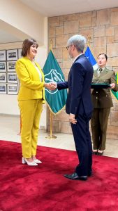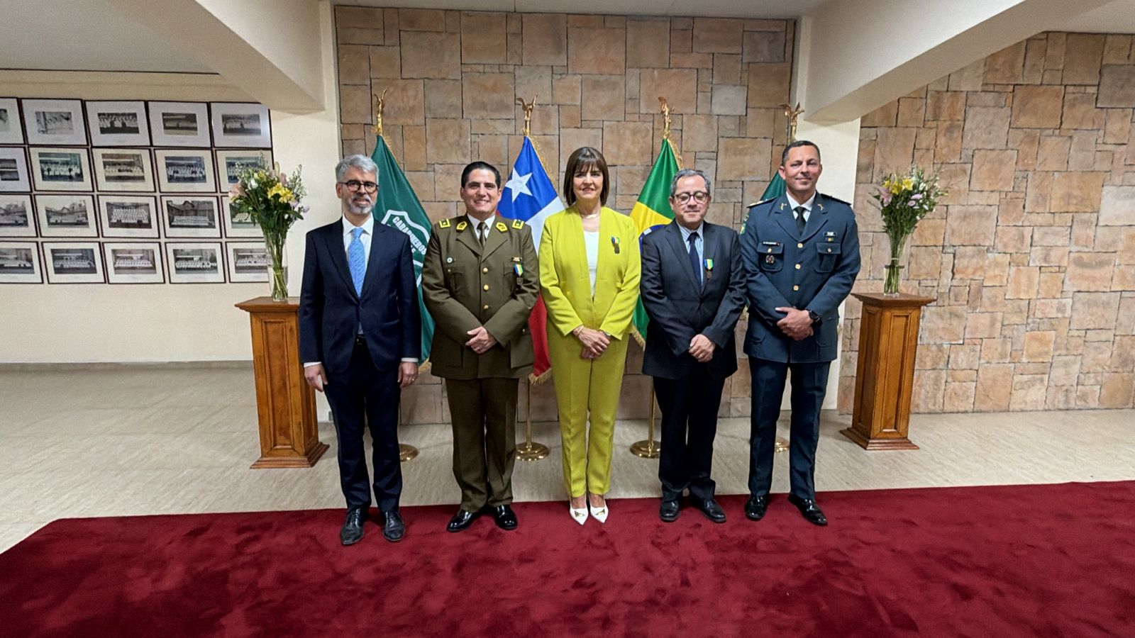 El 05 de diciembre en el Salón de Honor de la Academia de Ciencias Policiales de Carabineros de Chile, el Consejero Rodrigo Pinto, Jefe Sector Político de la Embajada de Brasil en Chile, efectuó la imposición de Medalla al Mérito Policial Luiz Gonzaga, a la Secretaria Ejecutiva del Programa de Cooperación Internacional del Gobierno de Chile para Policías Uniformados Extranjeros (CECIPU) General ® de Carabineros Sra. Pamela Olivares Peña.